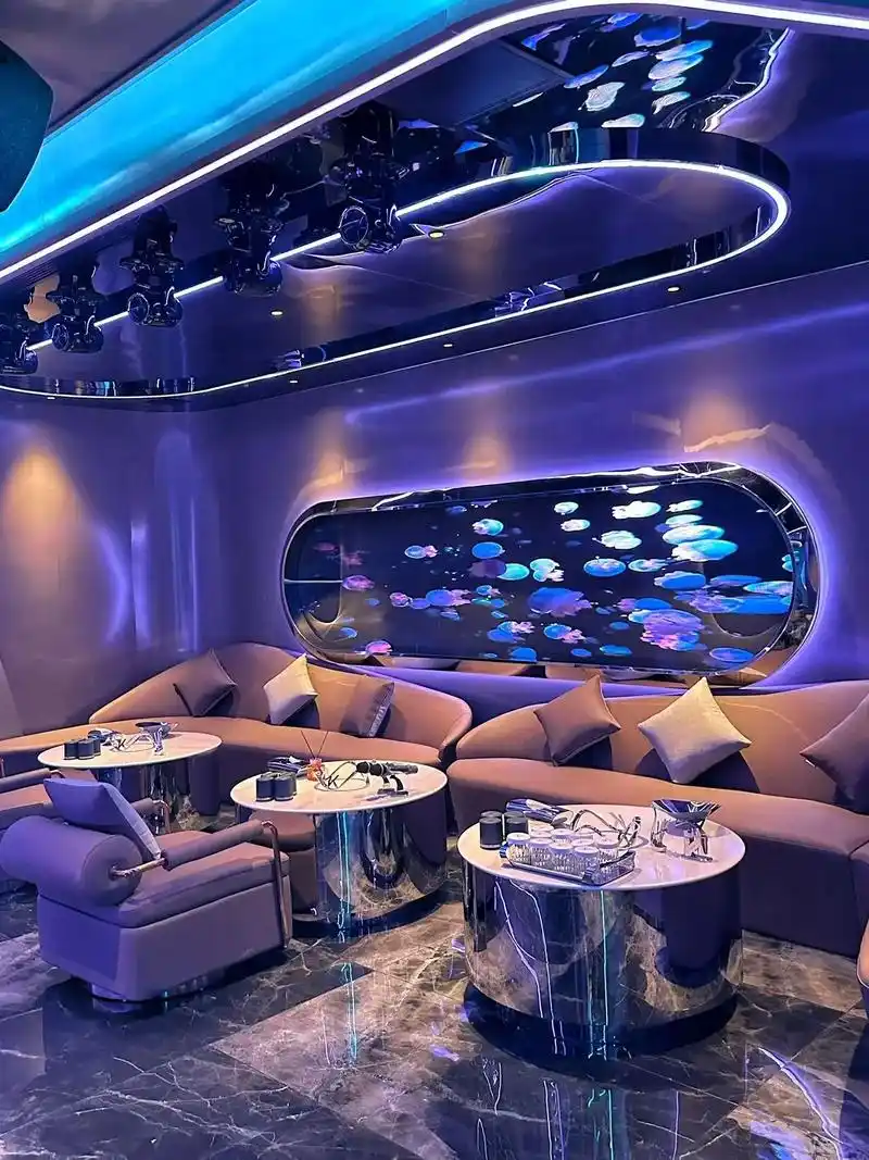 在这里,您可以尽情释放工作压力,与亲朋好友共度愉快时光。商务KTV的服务团队将竭诚为您提供贴心周到的服务,在舒适惬意的环境中,让您享受与众不同的娱乐体验。